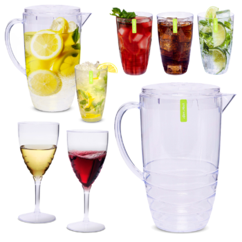 Eco-Friendly: Reduce waste by choosing reusable drinkware. This pitcher and matching drinkware can be washed and reused year after year, making it a sustainable choice for your dining needs.