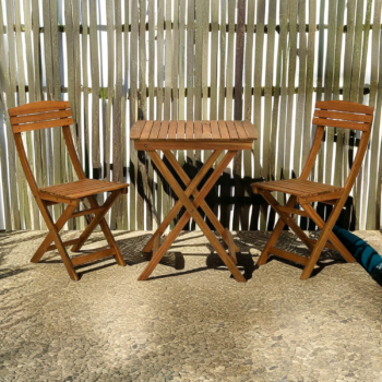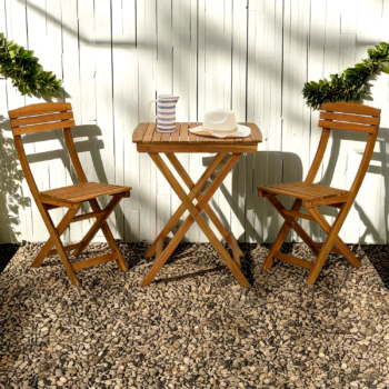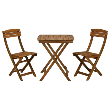 Slatted Design: The slatted design of the chairs and table ensures minimal water build-up, allowing them to dry quickly after rain showers and prolonging their lifespan.