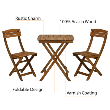 Rustic Charm: Crafted from 100% acacia wood with a teak look oil finish, this bistro set exudes rustic elegance, adding warmth and character to any outdoor space.