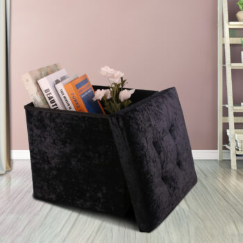 Black Crushed Velvet Storage Foot Stool Cube