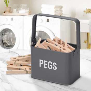 Modern Design: Grey exterior with white ‘Pegs’ text, adding a touch of contemporary style to your laundry space.