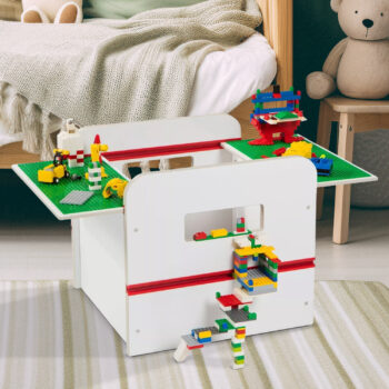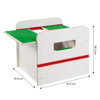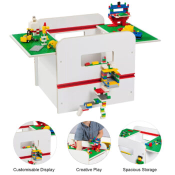 Creative Play: Equipped with two reversible removable lids featuring building plates on one side, compatible with all leading building brick brands, including Lego.
