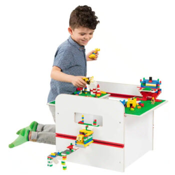 The Build Toy Box is not just a storage solution; it’s an interactive play experience offering a place to build and encourage creativity and organization.